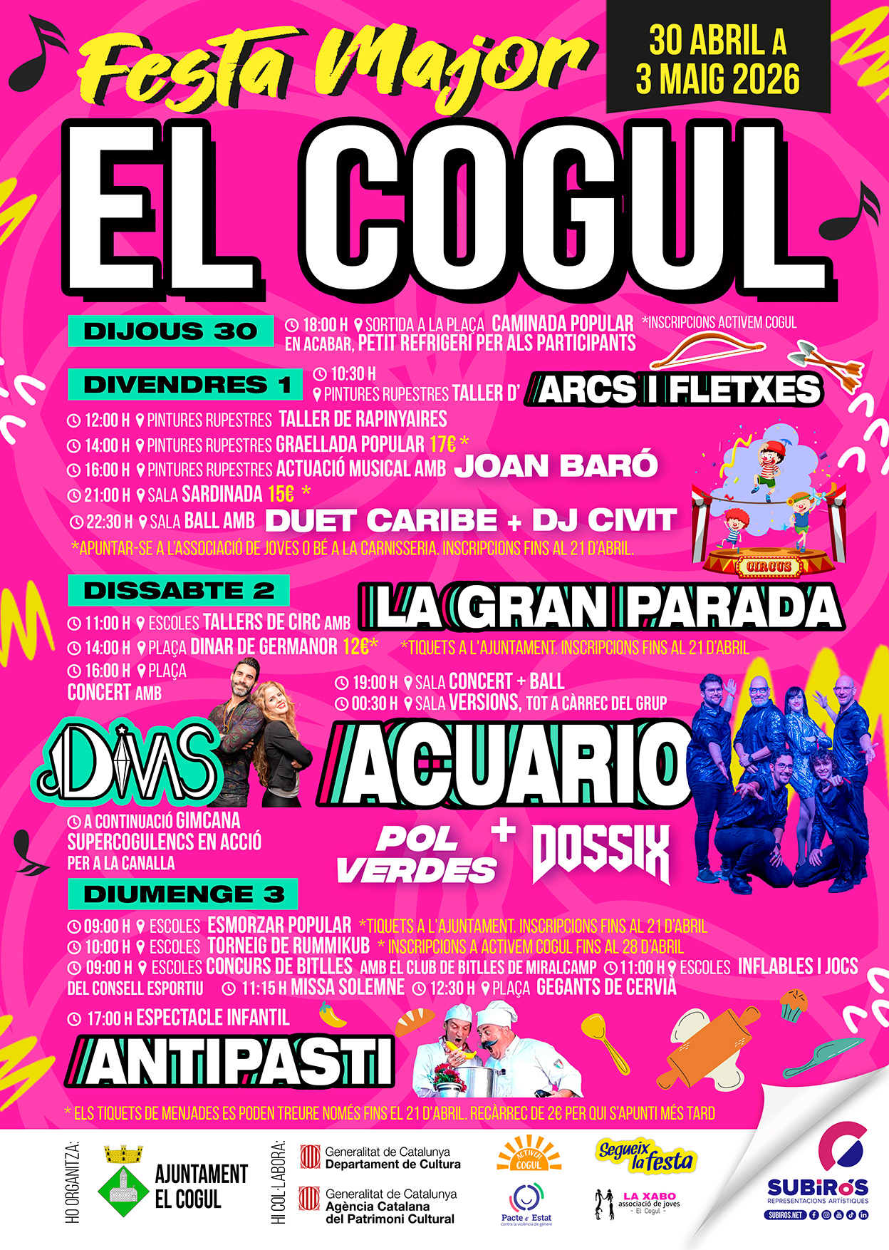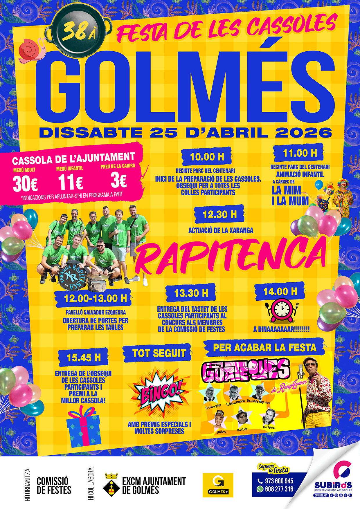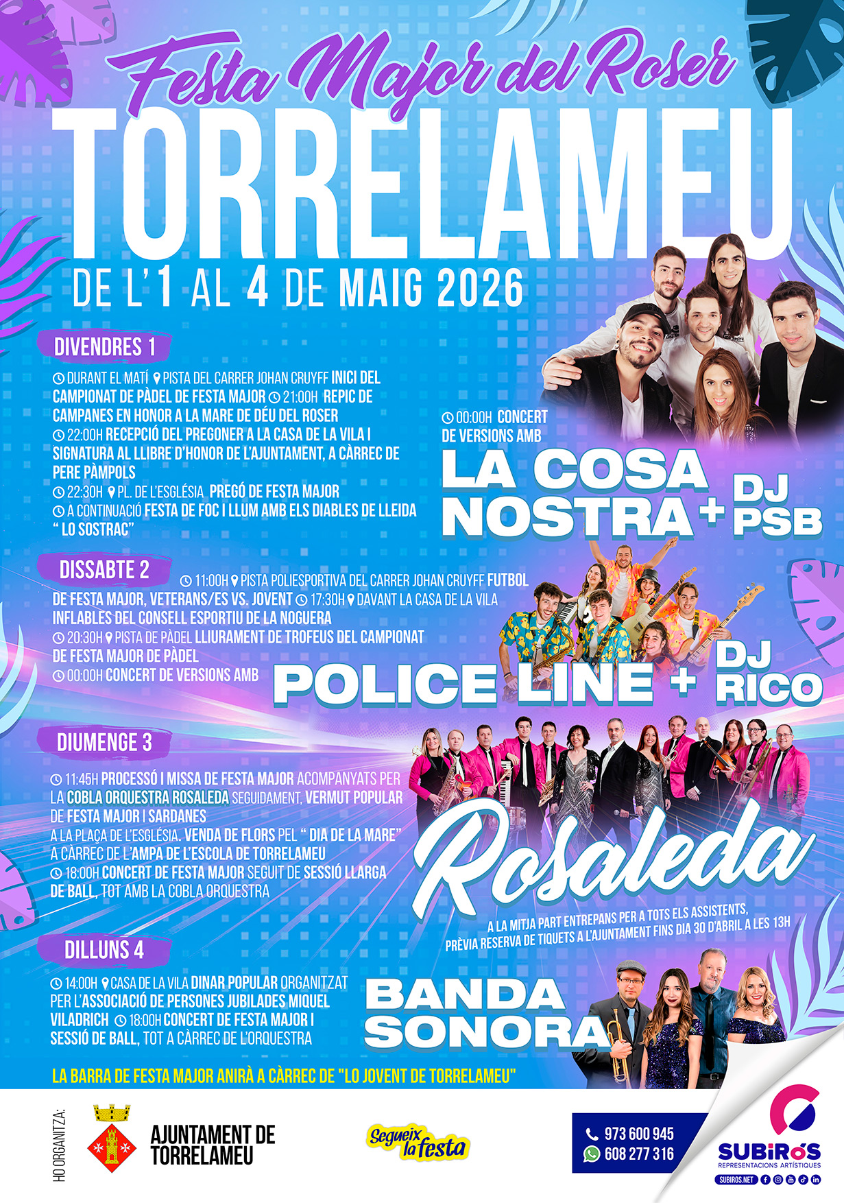 UN EQUIP DE PROFESSIONALS AL TEU SERVEI, ENS DEDIQUEM A LA CONTRACTACIÓ, PRODUCCIÓ I ORGANITZACIÓ DE TOT TIPUS D'ESDEVENIMENTS. DES DE FA MÉS DE 40 ANYS HEM TINGUT EL PROPÒSIT DE PODER TRACTAR AMB COMISSIÓNS DE FESTES, AJUNTAMENTS I EMPRESES, MÉS QUE COM A CLIENTS, COM A AMICS, PER PODE-LOS ASSESSORAR EN EL MUNTATGE DE LES SEVES FESTES, SENSE OBLIDAR-NOS DE LA PROFESSIONALITAT ADQUIRIDA GRÀCIES A VOSALTRES, LA QUAL TANT BONS RESULTATS ARTÍSTICS ENS HA ESTAT DONANT.